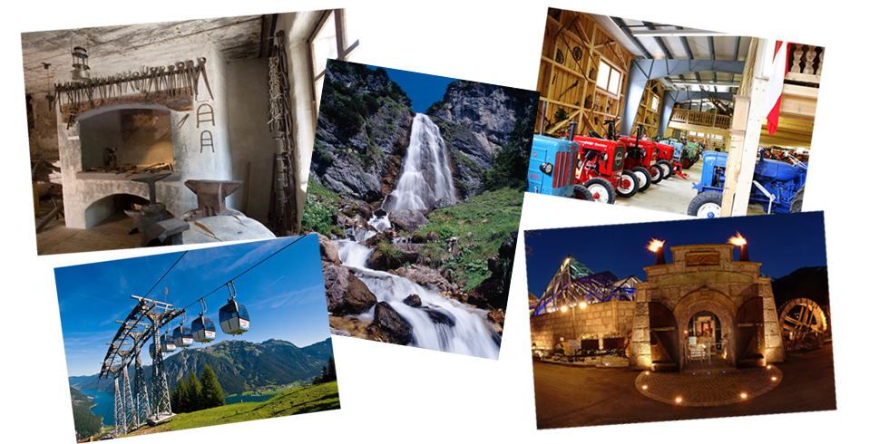 Dalfazer Wasserfall - Heimatmuseum Sixenhof - Tiroler Steinölmuseum - Traktoreum - Museum für alte Traktoren uvm.